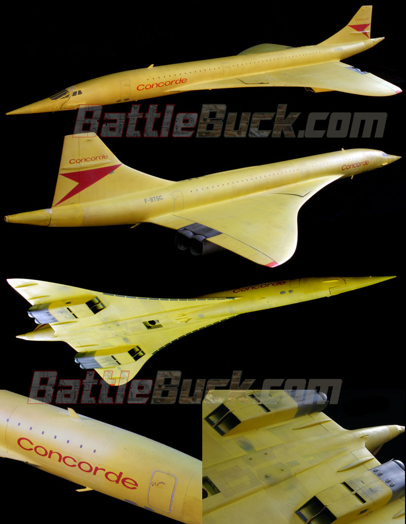 The models on this page were all used in the filming of the visual effects sequences seen in the last movie of the "Airport" series. The VFX were shot at Universal's Hartland facility, and four of the original models are shown here below. All the models were shot using the blue-screen travelling matte technique so common at the time, and the task was made all the more difficult by having to film relatively familiar subjects (aircraft that exist in real life) and matte them into bright sky environments. Video captures of scenes from the film follow the pictures of the models showing how they looked on screen. ConcordeThe Concorde is a model about four feet long, made of fiberglass with scribed panel lines and fine detailing, and is surprizingly heavy. The model is actually painted with a flat yellow finish designed to counteract unwanted reflections in the blue-screen filming process during flight sequences. The yellow paint was "dialed out" during colour correction processing and made to appear white in the final film. It has a full metal armature allowing the model to be mounted from the top, bottom, sides back and front. The hatch on the bottom is shown missing, the side mounts are visible by observing the slightly raised sections on the wings (the model is thirty years old after all!) and the nosecone and tailcone are removable as well to allow the motion control "model mover" rig to plug into the tail.![]() The video captiures below show some of the scenes where this model was used. Note the shot in the top lright corner which betrays the tail mount as a thick cylinder at the rear. ![]() McDonnell Douglas F-4 PhantomBelow we have a couple of F-4 Phantom models that were also used in the blue-screen process. The models are about two feet long and have steel armatures and a fiberglass shell. The grey one was meant to be an enemy fighter sent to shoot down the concorde. The orange one represented the "Harrison Industries unmanned drone" that was seen at the start of the film as target practice. The second picture shows how the model was prepared for filming. Note the removed hatches, held on with magnets, to allow the insertion of rods for the model mover. Note the nosecone could also be replaced with one that allowed the rod to be inserted from the front. The grey one had a vacuformed gloss white canopy made to help show the canopy "glass" reflections in the film. The model's "beauty passes" were shot without the canopy bubble in place against and the bright blue-screen backing. Clear parts are not used during this pass to avoid unwanted reflections called "blue spill". Then, in a separate motion control pass, the mminiature was covered entirely in black fabric and the white canopy in place. The blue screen was substituted with black backing so that the only thing that registers in the pass is the canopy reflection. When the two images were superimposed together, the canopy glass would appear to be in place as shown in the videocaptures from the film below. That kind of work was not possible before motion control systems, which allow frame-by-frame repeatable camera and model moves had been developed. ![]() ![]() ![]() ![]() Dassault-Breguet Mirage F-1Seen only fleetingly in the film, this model of the French-built fighter is about three feet long and represented a pair of Italian fighters sent to destroy the enemy terrorists trying to shoot down the Concorde in the film. Although the model's screen time was severely limited, it is nonetheless a very beautifully detailed model and in near perfect condition after all these years. As with the grey Phantom above, this model was shot without any canopy bubble in place, and the reflection of the canopy was added in a separate motion control pass.![]() ![]() Models photographed and processed exclusively for Battlebuck.com by E. James Small, www.smallartworks.ca Photos may not be re-posted without permission. Video Captures copyright Universal City Studios. |